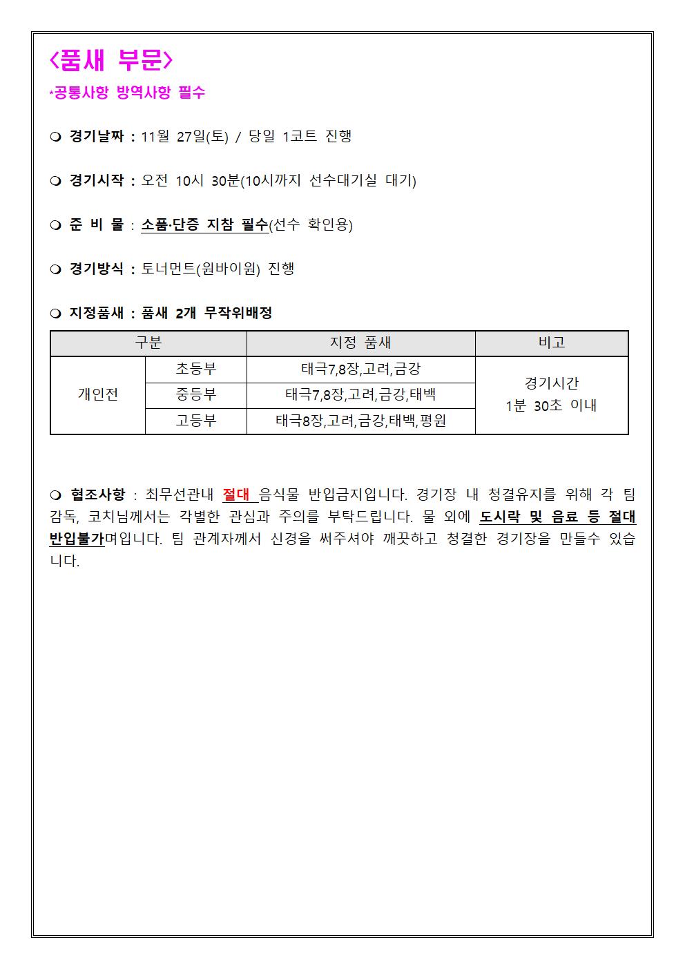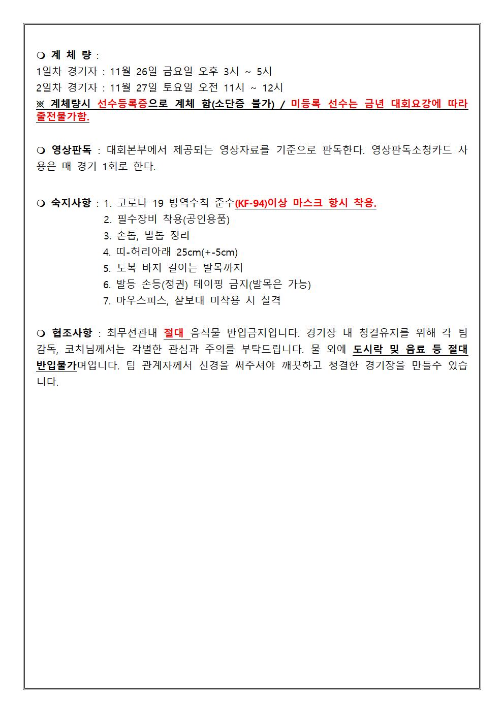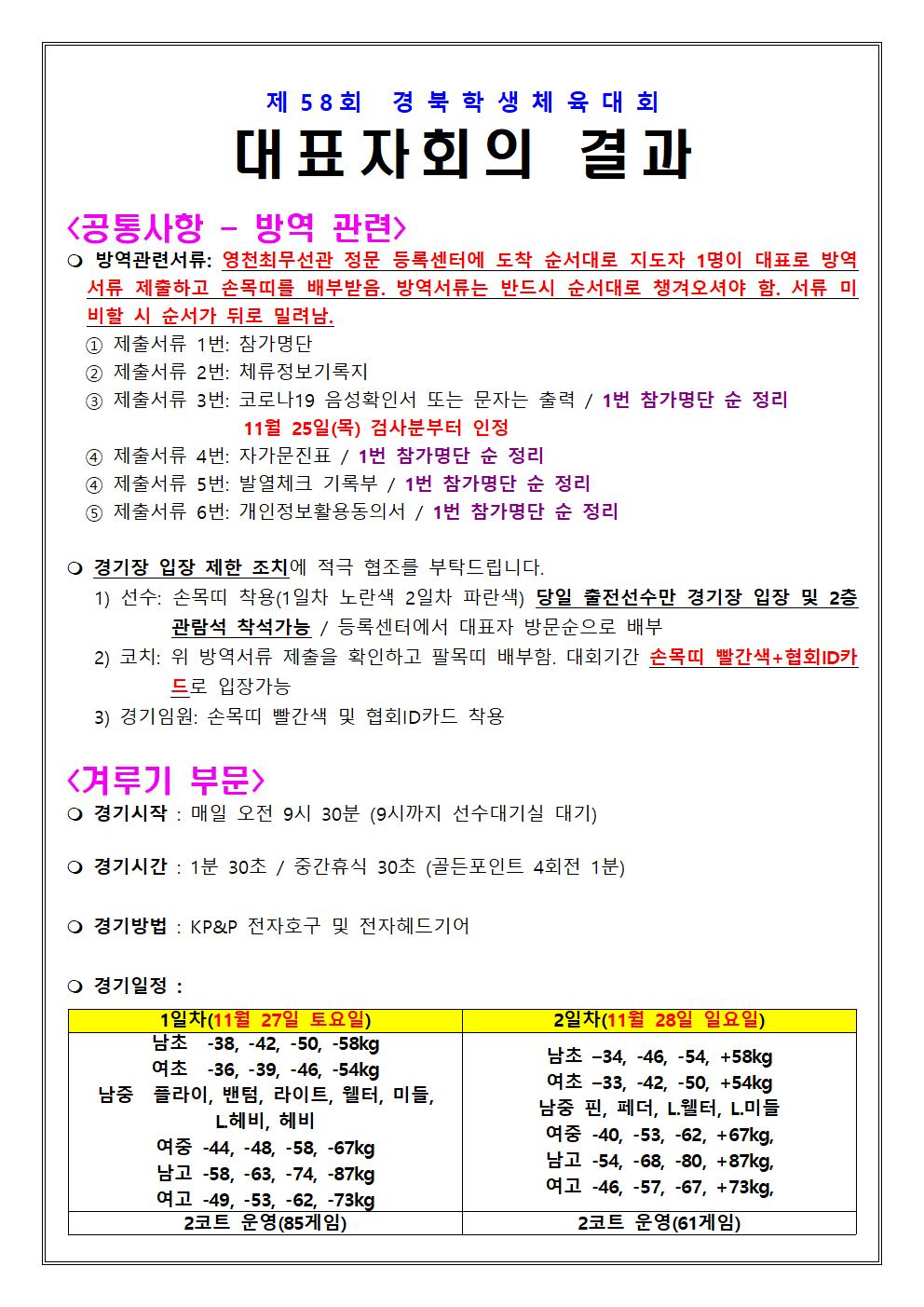 제58회 경북학생체육대회 대표자회의 결과 및 대진표(방역 필수서류 포함)