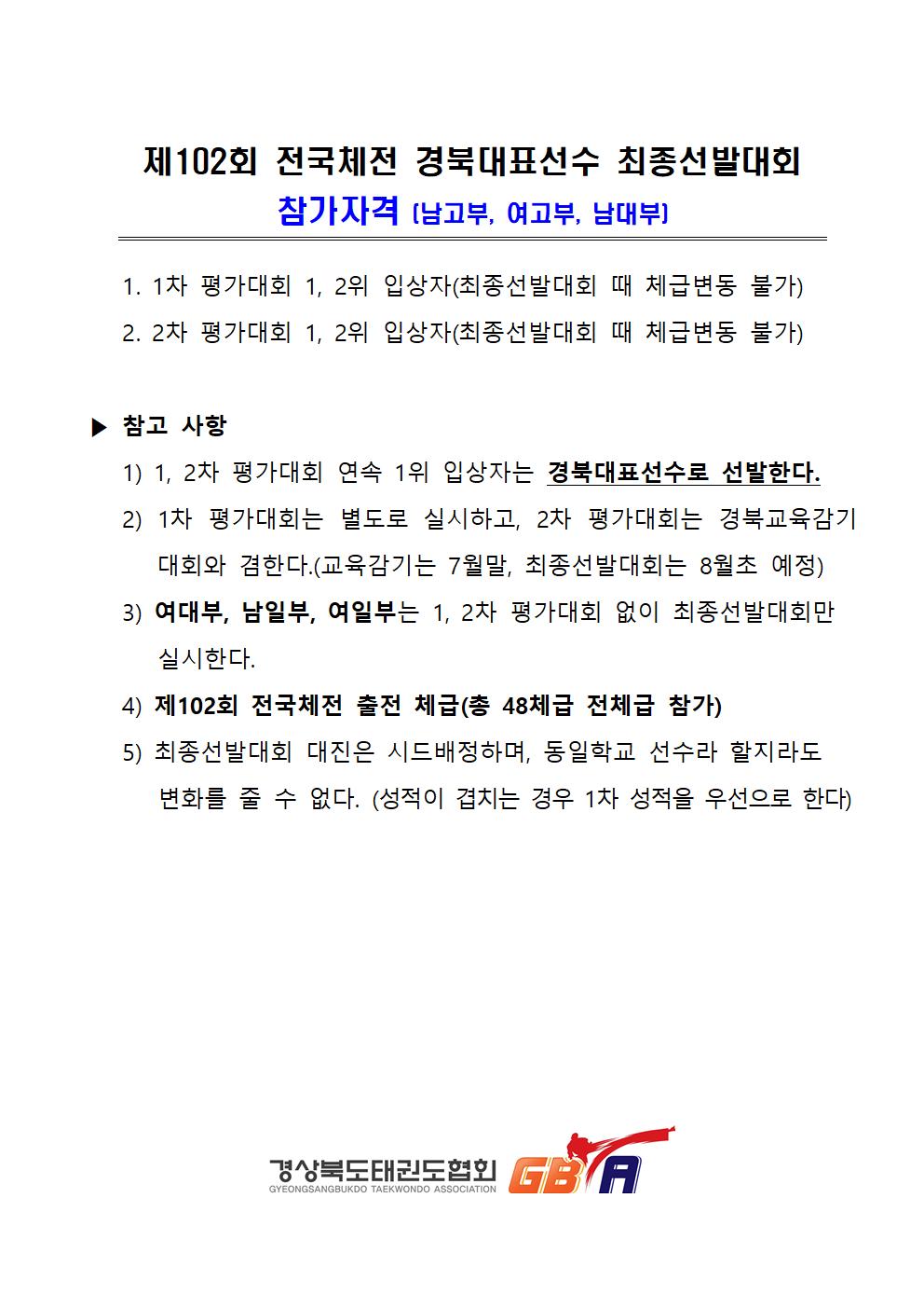- 제목 [알림] 제102회 전국체전 1차 평가대회(남고,여고, 남대부) 개최