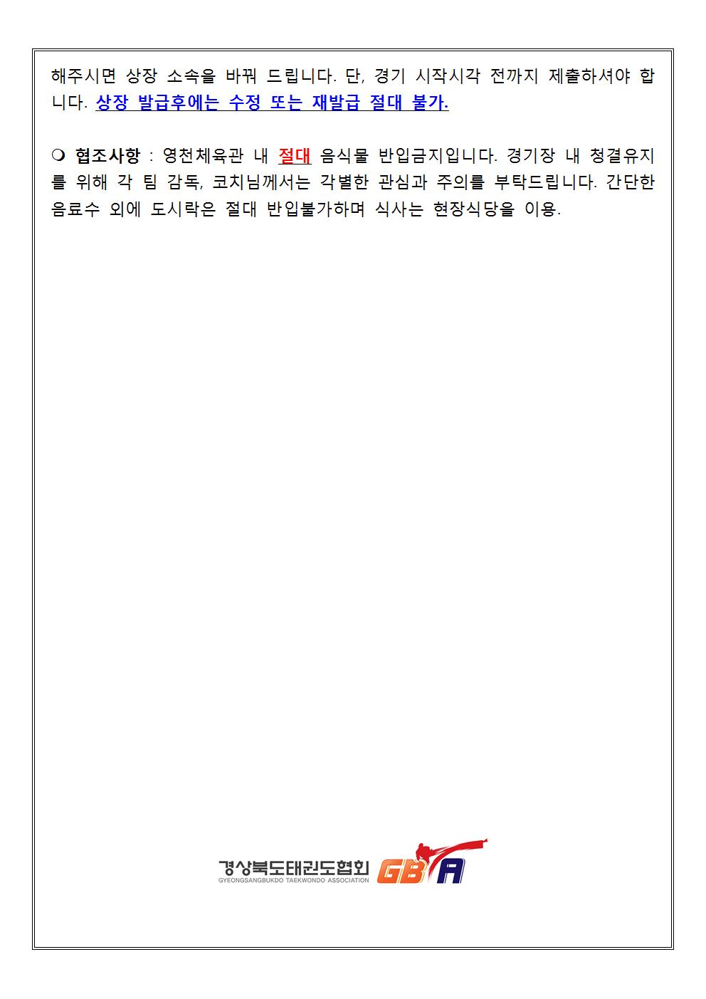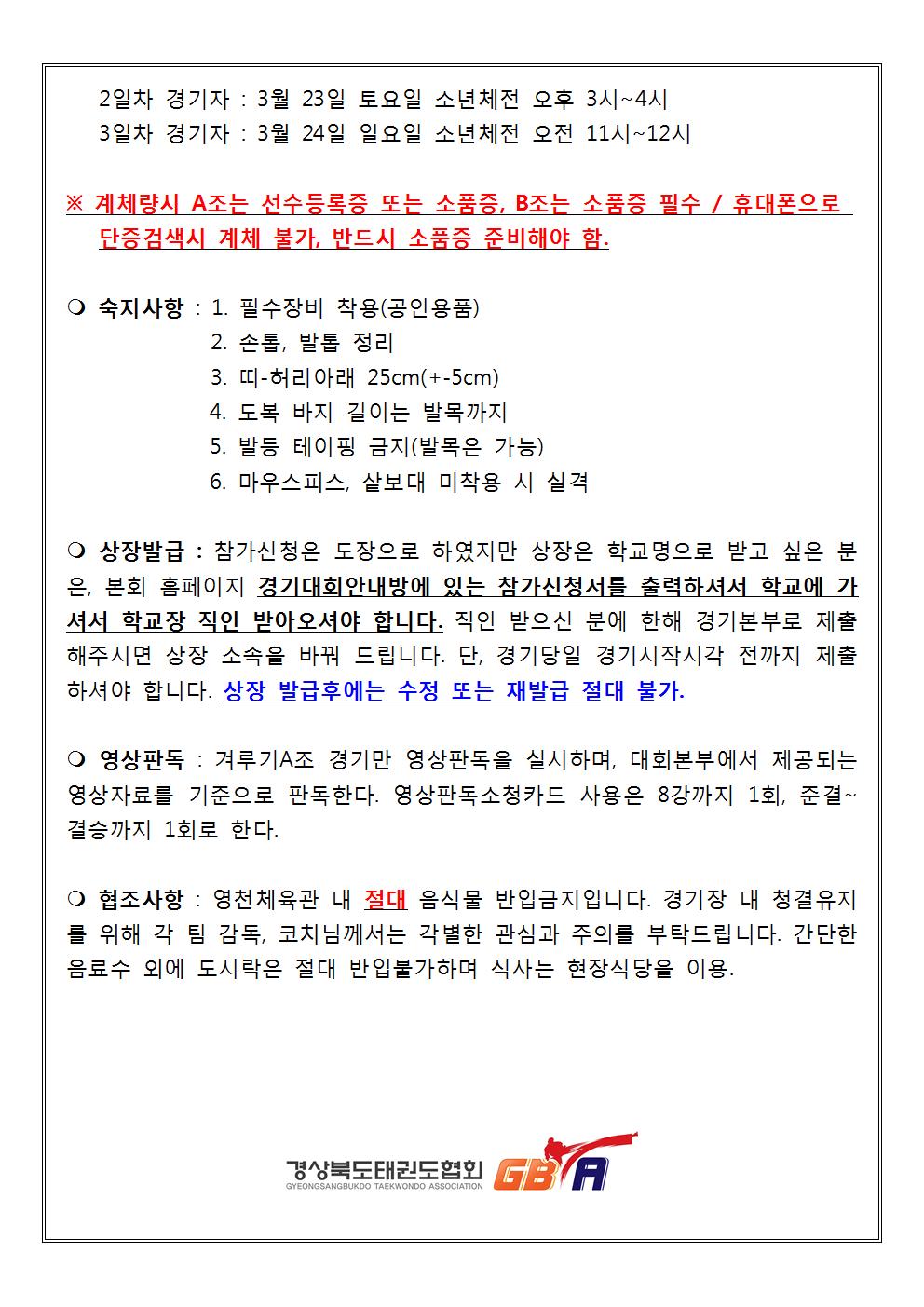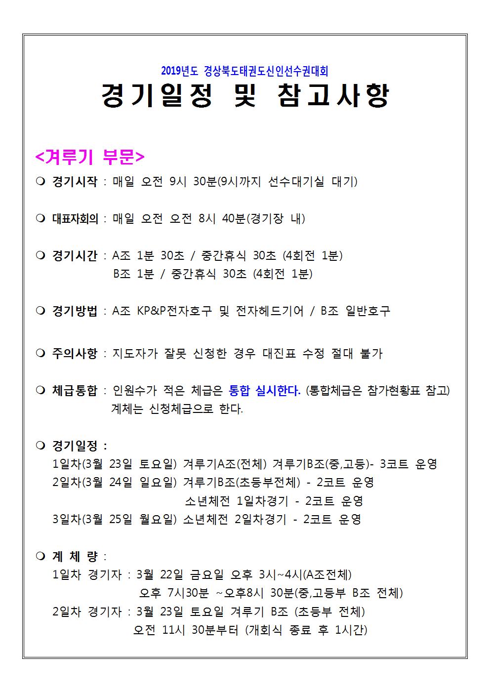 [알림] 2019 경북태권도신인선수권대회 경기일정 및 참고사항