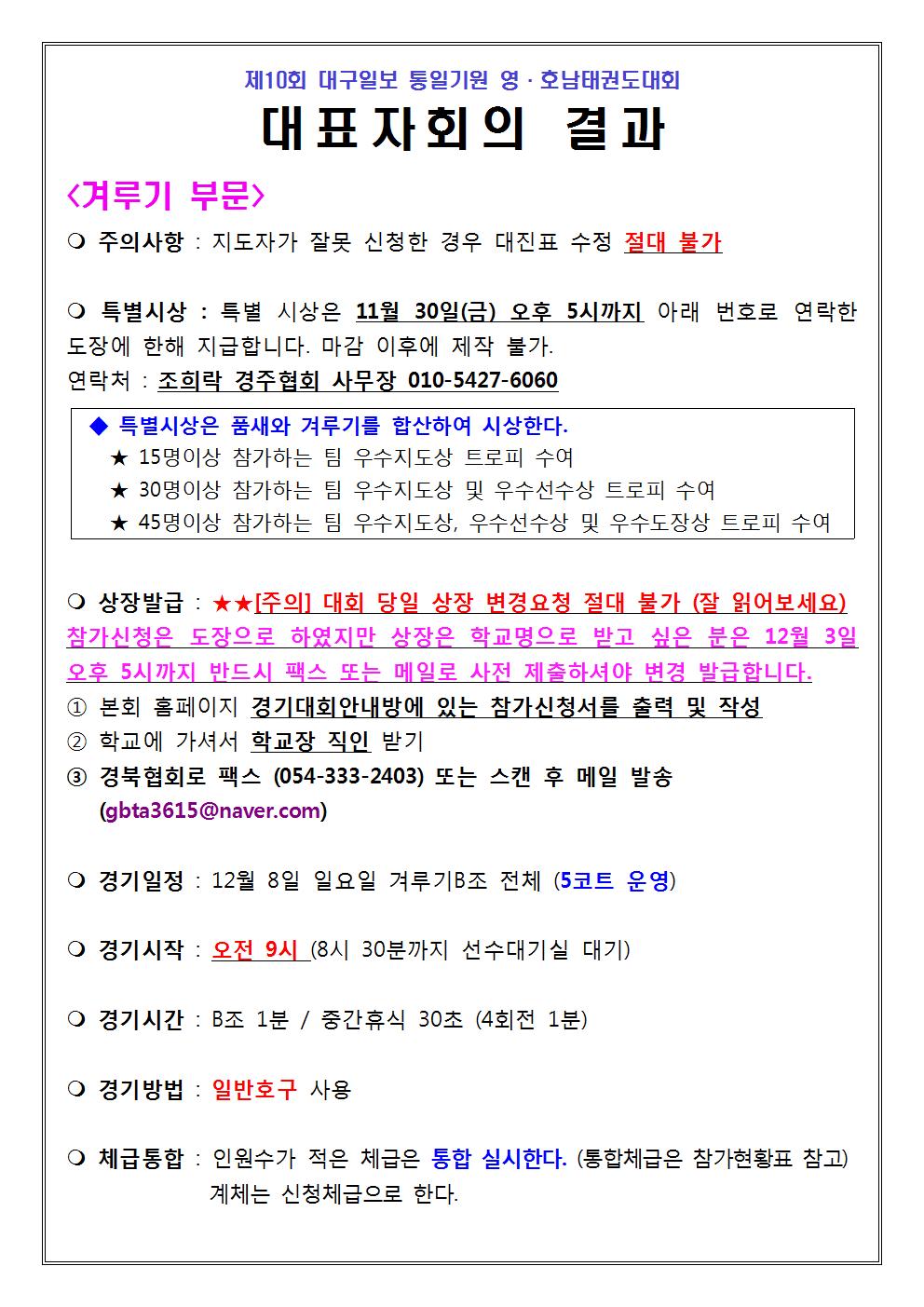 문의사항 경북협회 054-333-3615 [ 품새대진표.zip ]