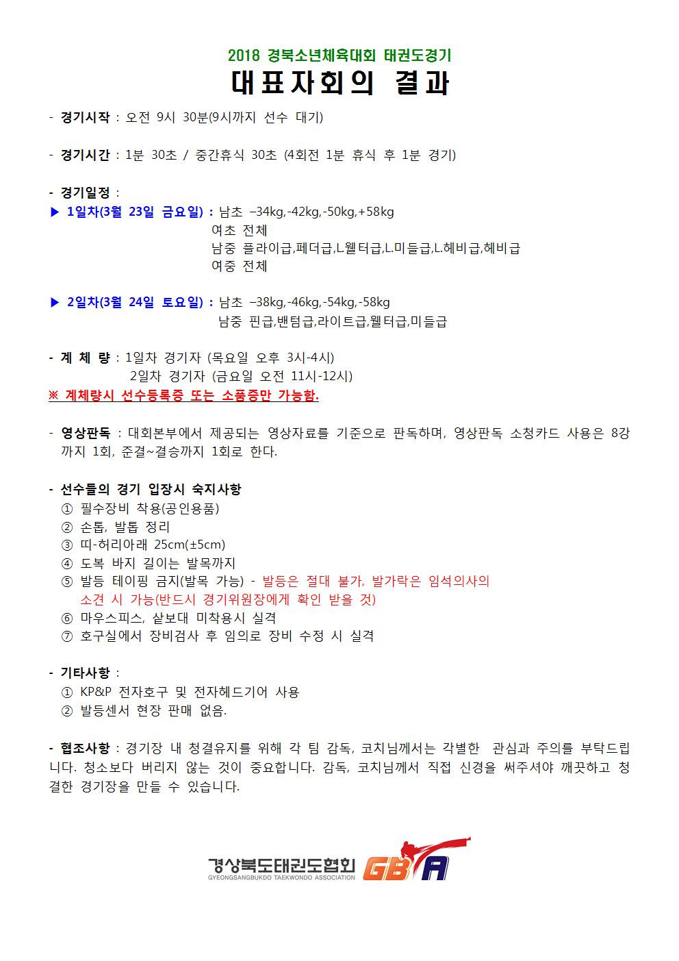 2018 경북소년체육대회 대표자회의 결과 및 대진표