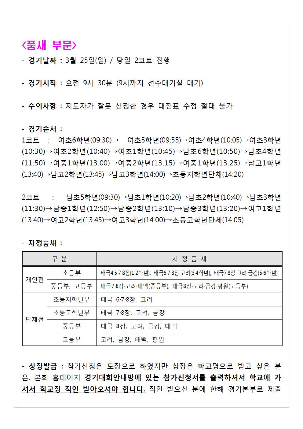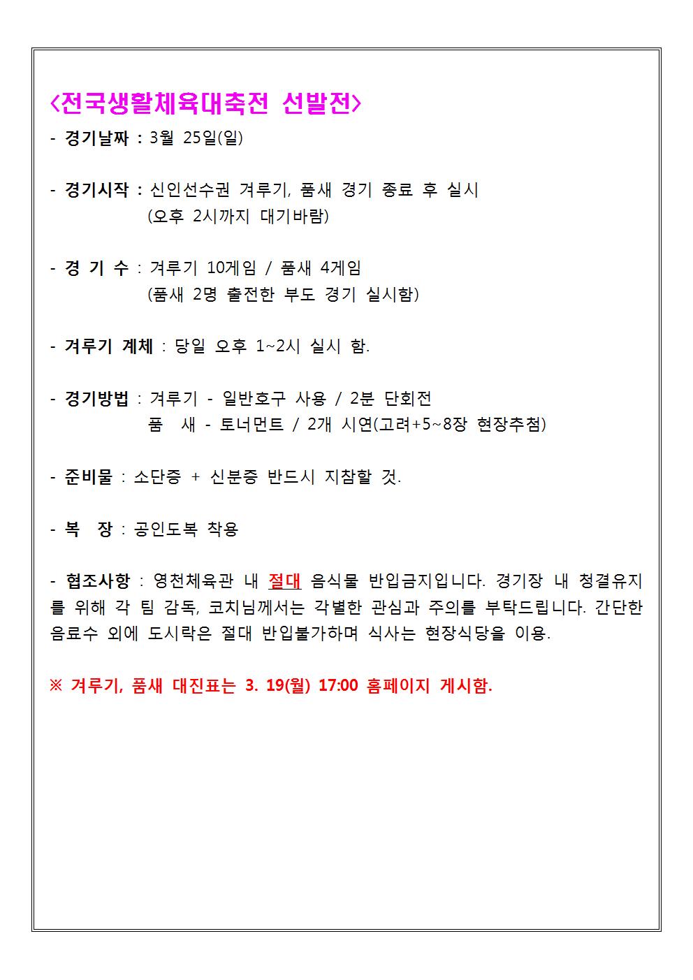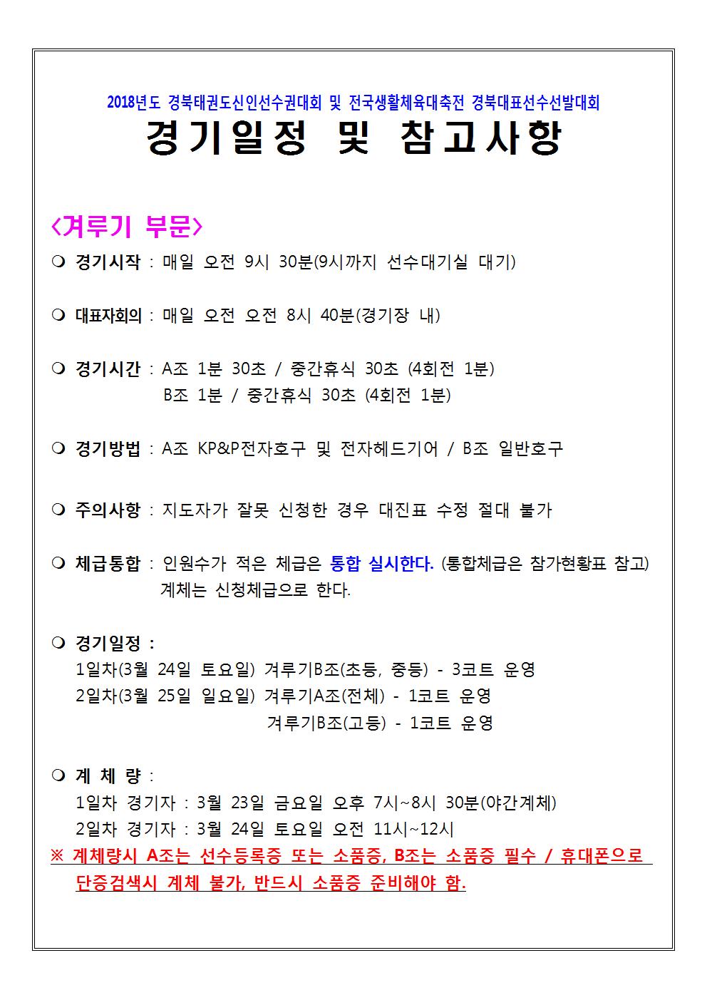 2018년도 경북신인선수권 및 전국생활체육대축전 경기일정 및 참고사항