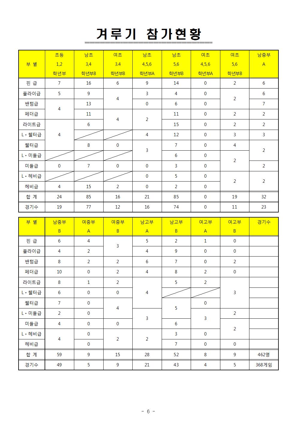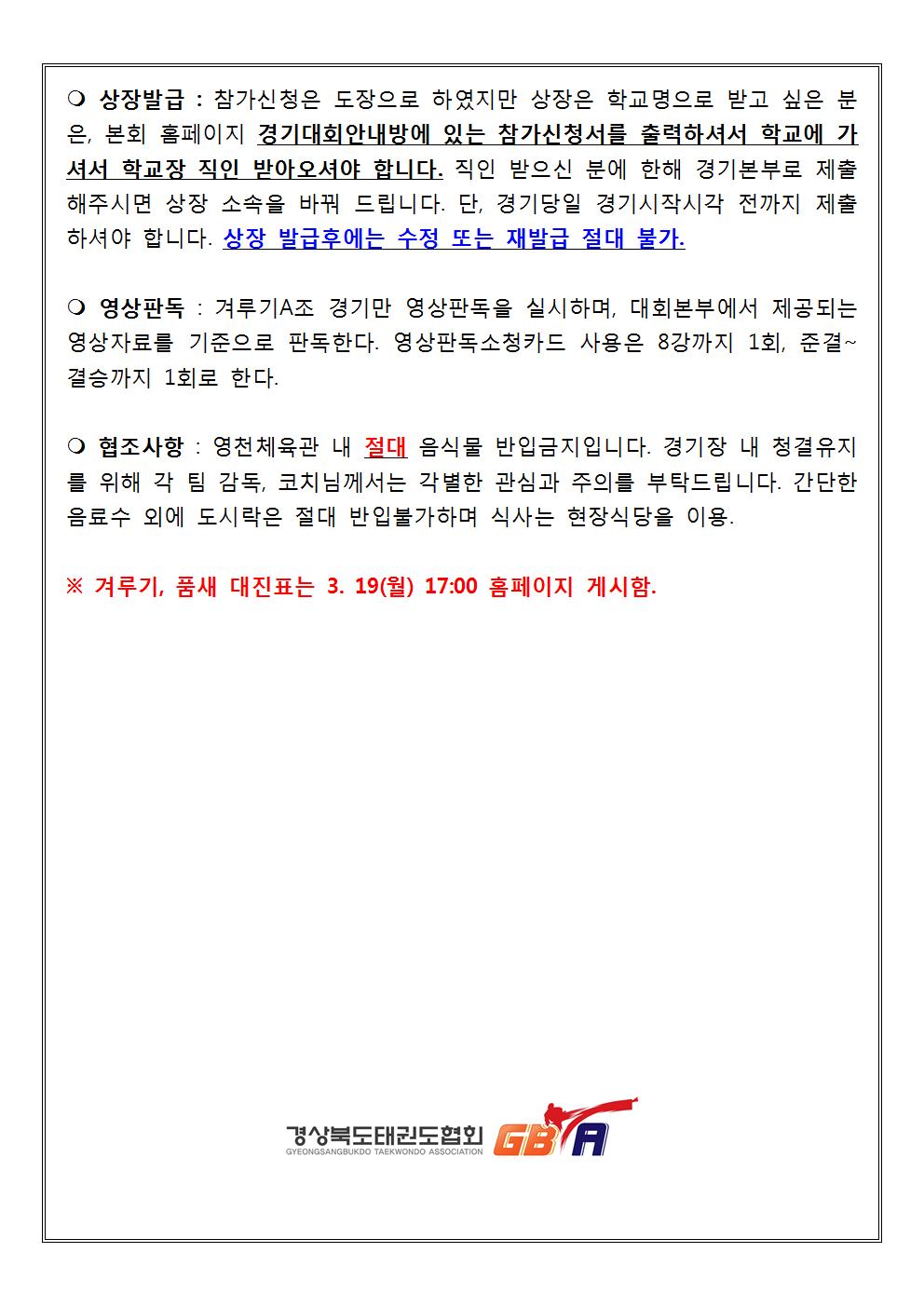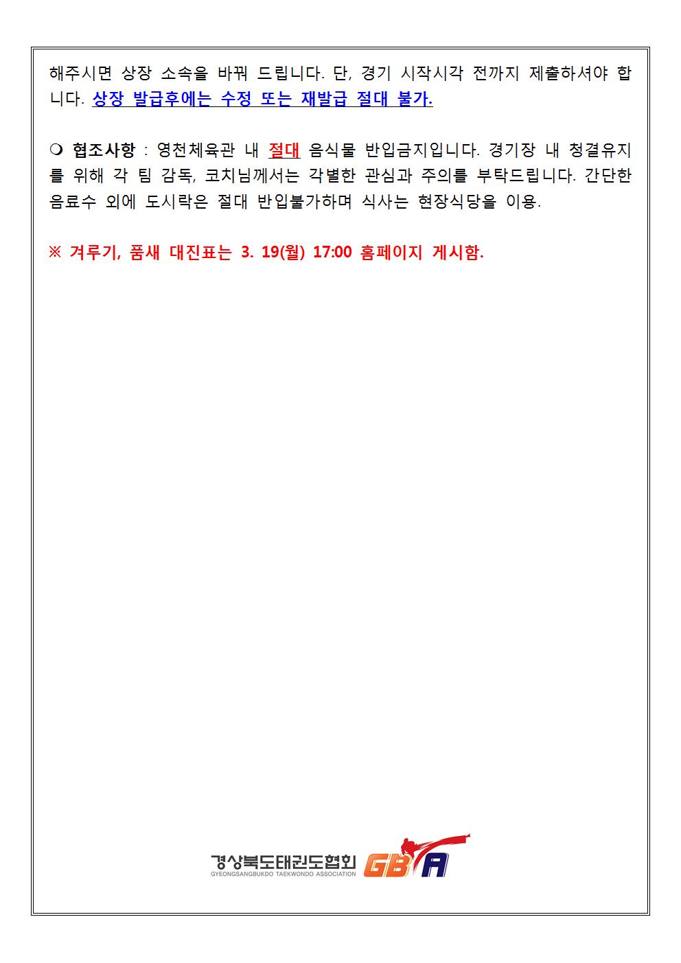 2018년도 경북신인선수권 및 전국생활체육대축전 경기일정 및 참고사항