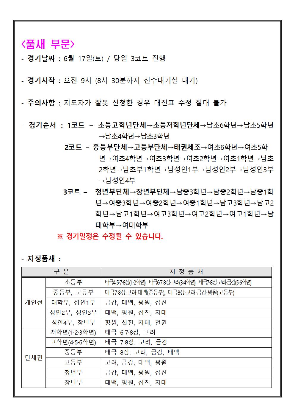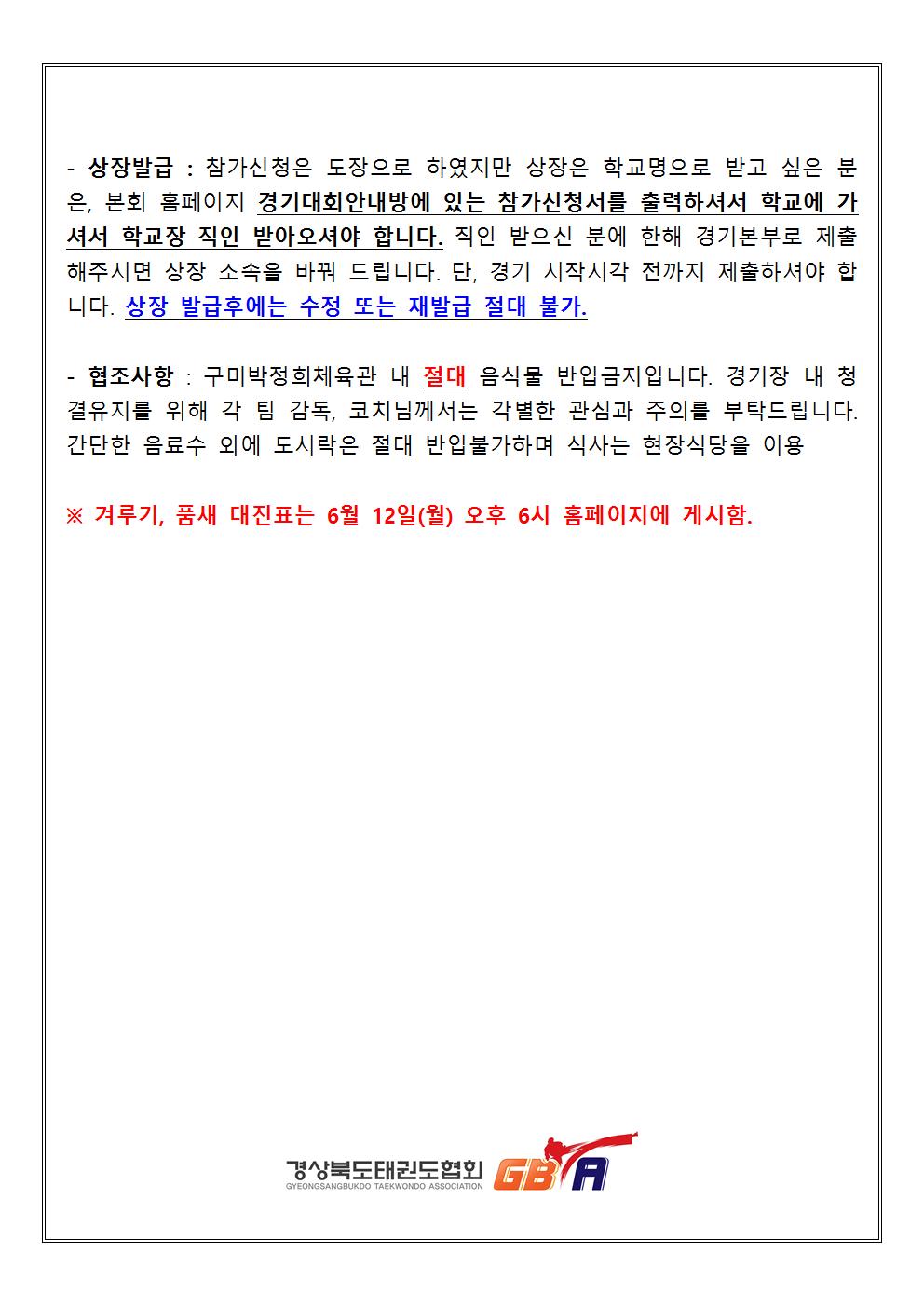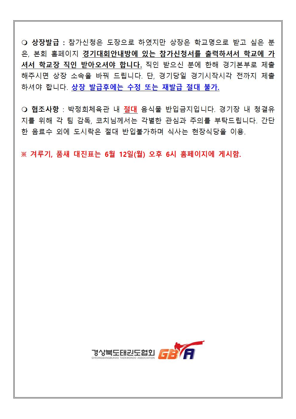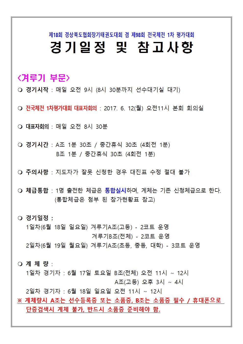 제18회 경북협회장기대회 경기일정 및 참고사항