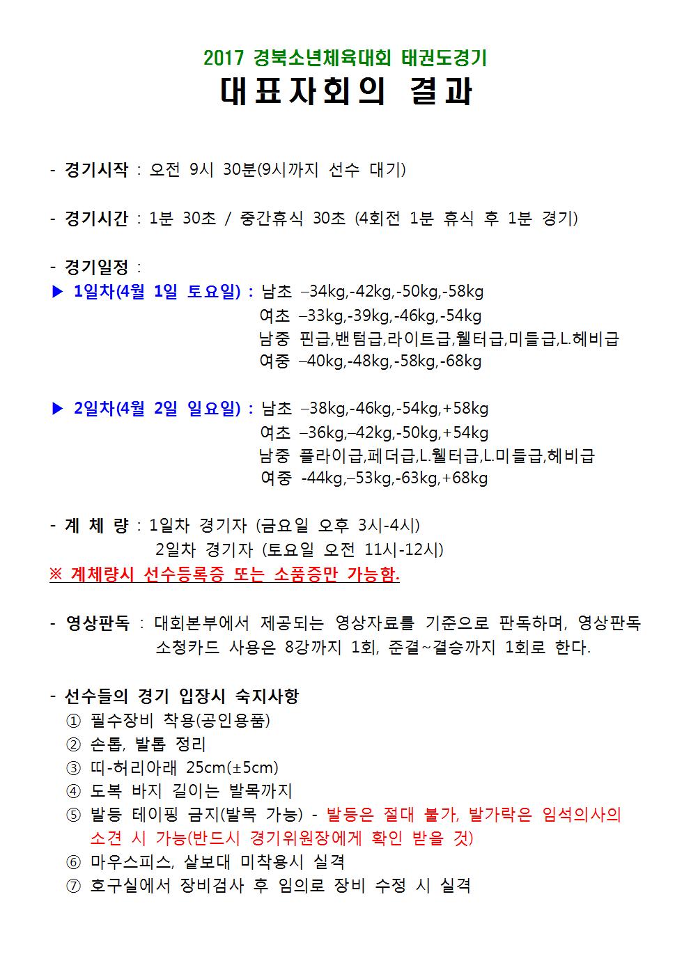 2017 경북소년체육대회 태권도경기 대표자회의결과