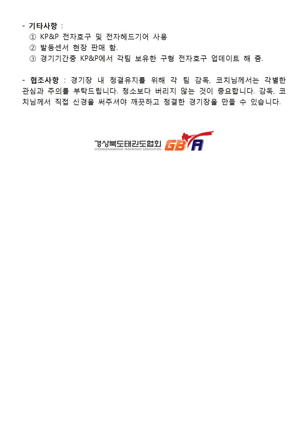 * 경기에 관한 문의 및 대진표 문의사항은 겨루기경기분과 김대유 위원장께 연락바랍니다(010-8973-6636)